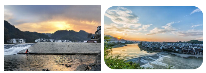 漁梁壩位于安徽省歙縣徽城鎮(zhèn)漁梁村,屬于國家重點(diǎn)文物保護(hù)單位,是新安江上游最古老、規(guī)模最大的古代攔河壩,是徽州古代最知名的水利工程,被稱為“江南第一都江堰”。據(jù)考證,早在隋朝,人們就曾在此壘石為壩,現(xiàn)在的古壩為明代重建,有明萬歷三十三年修壩記事碑可考。