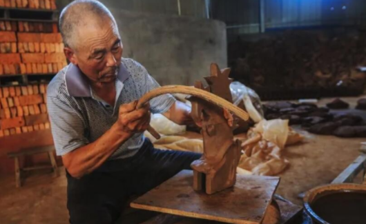 古龍窯——“燒窯的過程,靠的是手工和經(jīng)驗(yàn),沒有現(xiàn)代器具參與,全靠從祖上傳下來的工藝,材料也從來沒變過?!敝两裉沾蓮S依舊保留全部是手工的做法,采料、選料、砸碎、陳腐、精揉泥料、拉片、捶片、盤條、上肩、垰把,整形數(shù)次才能成型;再經(jīng)陰干,施釉,成為半成品;完全晾干通透后,裝窯,燒窯,出窯。