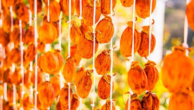 皖南,有多少座山,就有多少個村莊。那些高得仿佛看不到頭的綿綿群山中,點(diǎn)綴著一個個充滿著煙火氣息的村莊。山中一年四季有風(fēng)韻,春花遍野,夏泉叮咚,秋葉繽紛,冬雪漫山,人們共享著大自然的恩賜,尤其到了秋天,曬秋成為每個村莊最隆重而喜悅的農(nóng)事。姬川村位于歙縣上豐鄉(xiāng),距離歙縣中心城區(qū)大約1小時車程,相比這個有些文縐縐的名字,當(dāng)?shù)厝烁矚g稱之為“雞公尖”。這里海拔700米,交通閉塞,是一個藏在深山人未識的美麗村莊。秋天來到這座小村莊,除了大片云海和梯田式種植的貢菊,人們還會看到最驚艷、最美味的秋色。姬川村以盛產(chǎn)一種形狀類似燈籠的柿子而出名。每到秋季,鄉(xiāng)民們將柿子用繩子串在一起,在漫山遍野的樹枝上高掛,在房前屋后的支架上晾曬,燈籠柿黃澄澄、紅彤彤一片,這一道風(fēng)景的呈現(xiàn),也給了這荒涼的小山村增添了無限溫暖和喜氣。